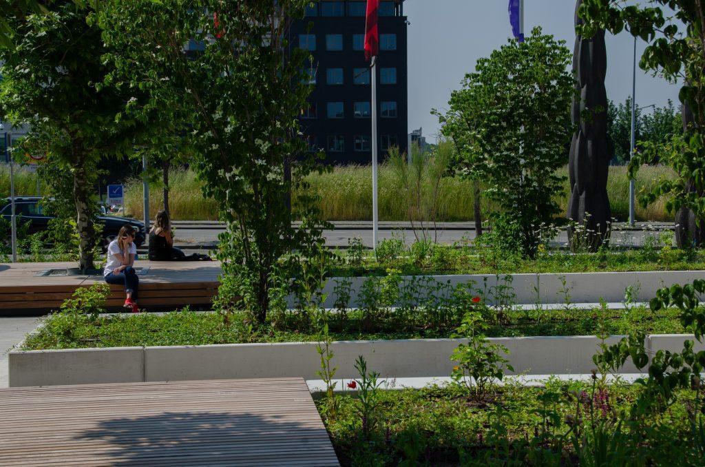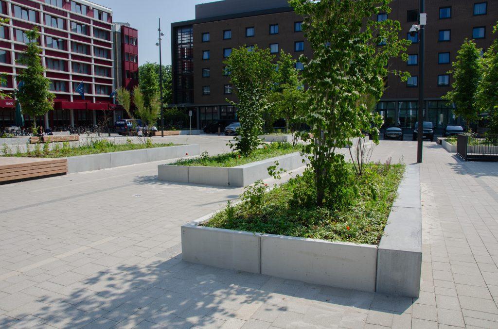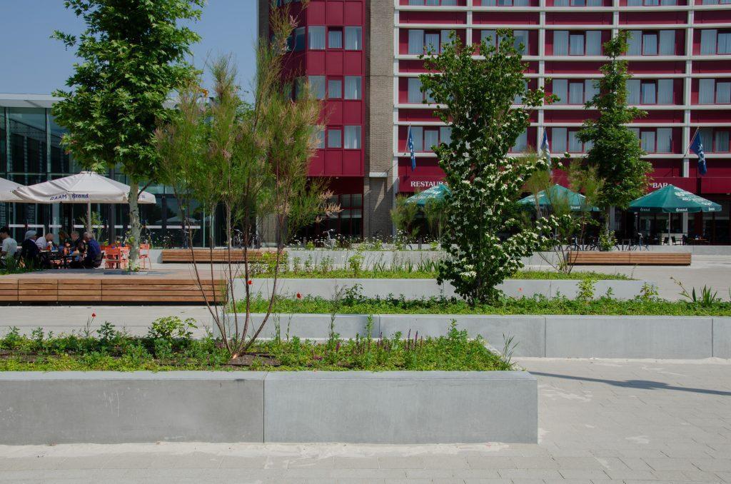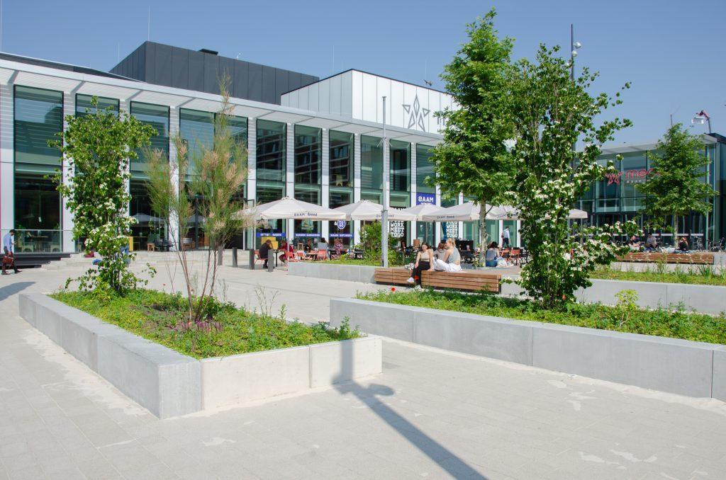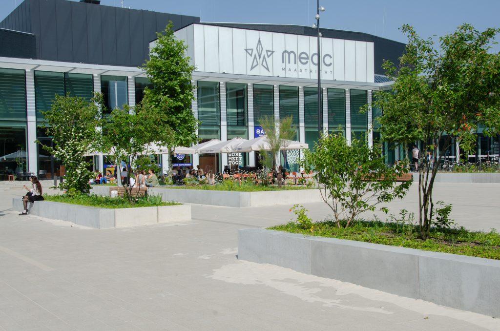 Forumplein Maastricht Een levendig plein waar mensen elkaar treffen in het groen