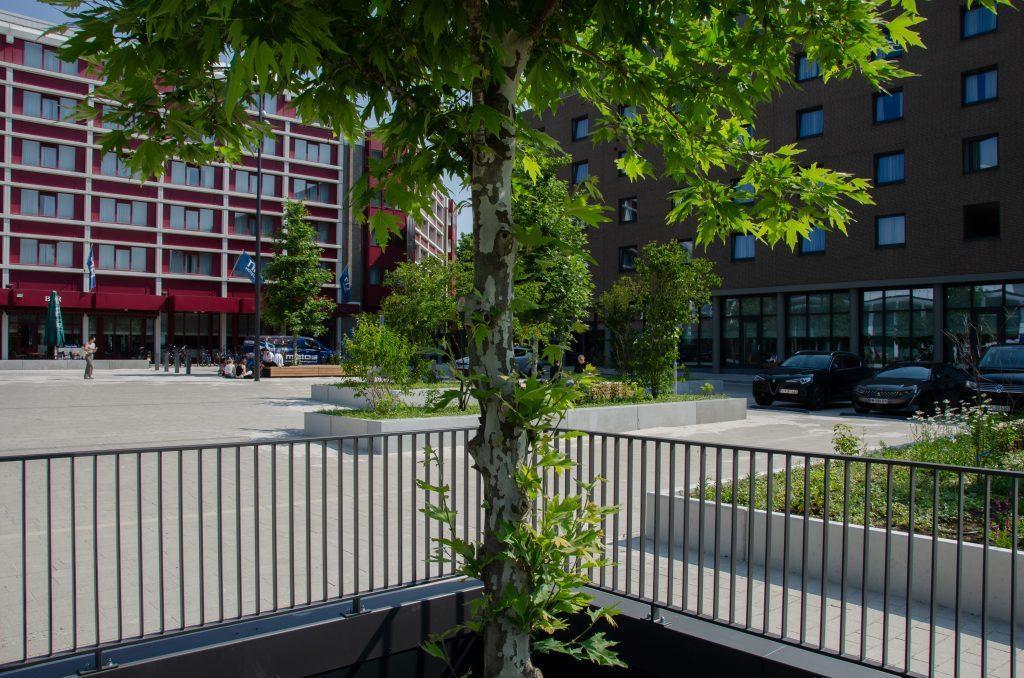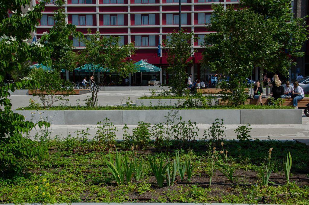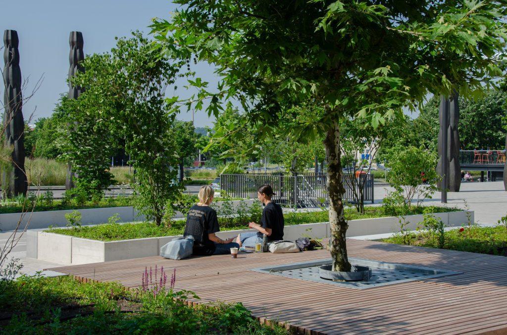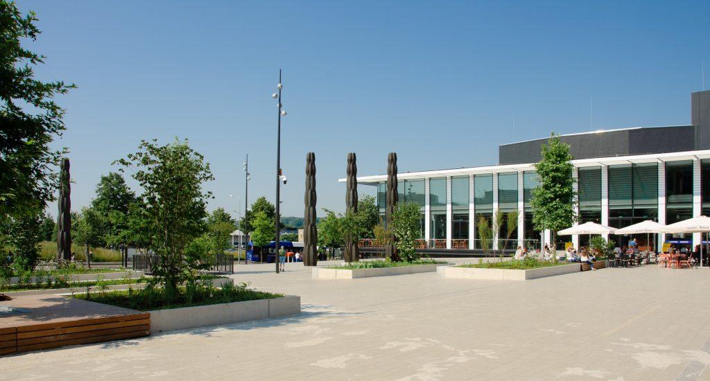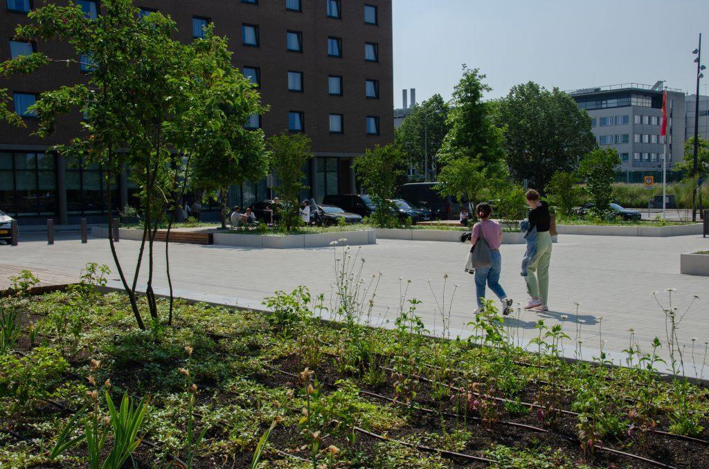 Forumplein Maastricht Een levendig plein waar mensen elkaar treffen in het groen