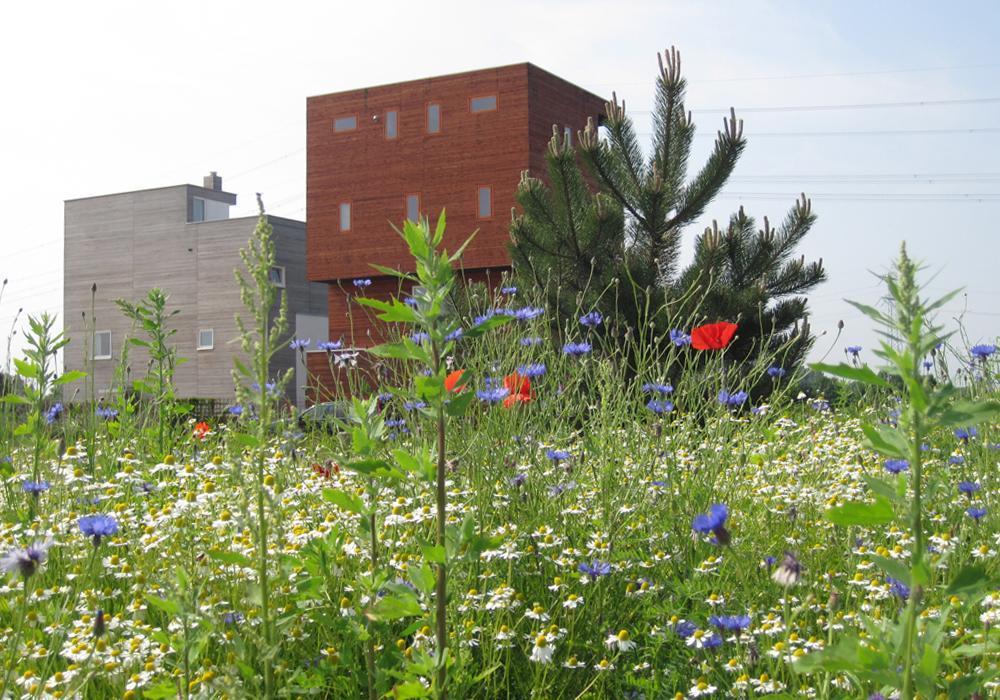 Rieteiland Oost is misschien wel het meest bijzondere eiland van IJburg. Niet alleen is het met honderd kavels, een manege en een tennispark het kleinste eiland, het heeft ook de meest natuurlijke uitstraling. Gesitueerd pal aan het Diemerpark biedt het een open uitzicht op het groen en het water. Maar hoe creëer je het echte eilandgevoel op een kaal stuk opgespoten zandland?