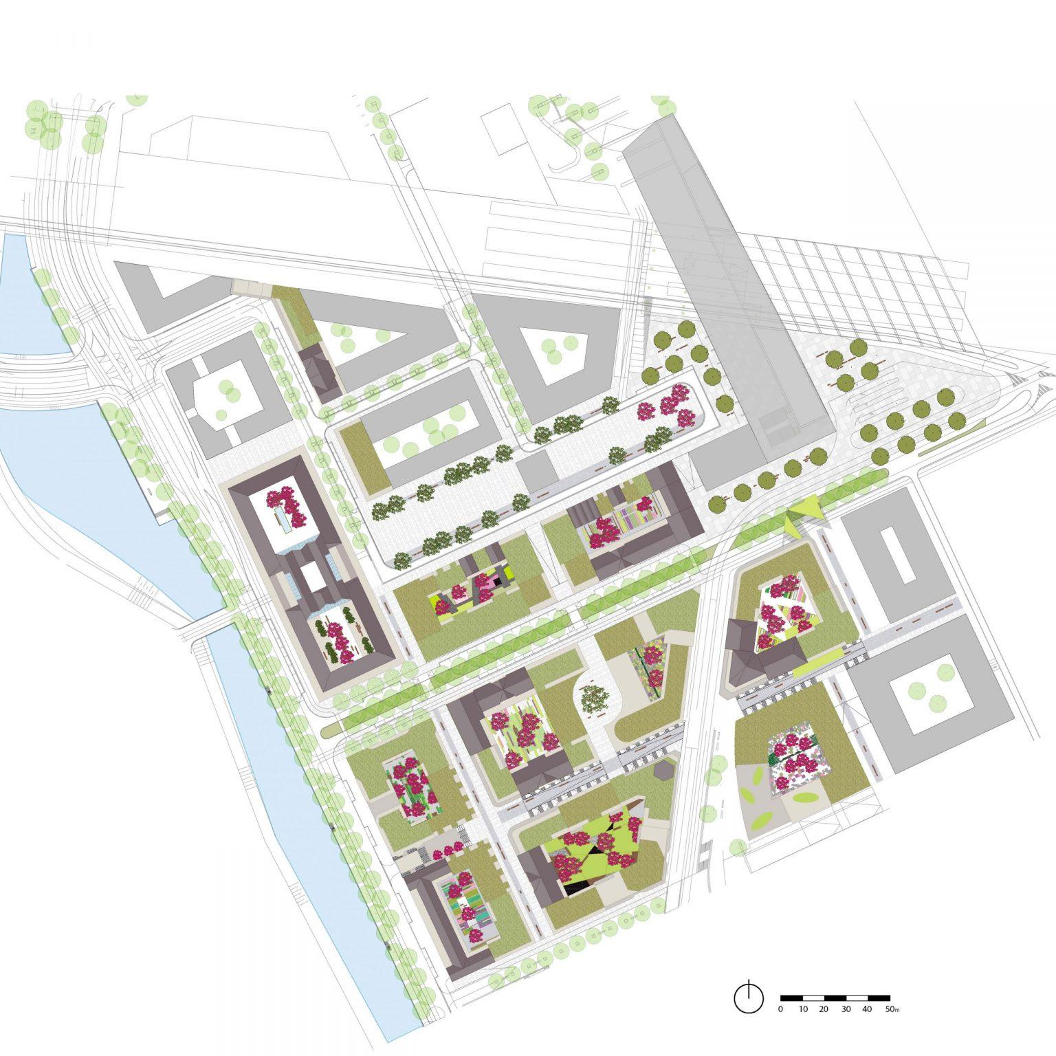 Utrecht krijgt een tweede stadshart: Leidsche Rijn Centrum. Opgespannen tussen de woonwijken van Leidsche Rijn en de Utrechtse binnenstad, gedeeltelijk over de A2, verschijnt een levendig centrum om te wonen, te werken, te winkelen en uit te gaan. In het kader van een aanbestedingstraject werkte Buro Lubbers het concept inrichtingsplan van Lodewijk Baljon landschapsarchitecten verder uit. Het resultaat is een ingetogen, functioneel ingerichte openbare ruimte. Detaillering in verharding en platanen in verschillende verschijningsvormen geven de publieke ruimte een gevarieerde uitstraling zonder de eenheid te verstoren. Als reactie op de stenige openbare ruimte worden de binnenhoven van de bouwblokken juist als groene oases in de stad ontworpen. De tuinen worden samen met de bewoners ingericht met behulp van vastgestelde ingrediënten als bomen en hagen, vaste planten en bollen, water, meubilair en verharding. Hierdoor ontstaan elf binnentuinen met elf verschillende smaken, maar allen met een herkenbare, gemene deler.