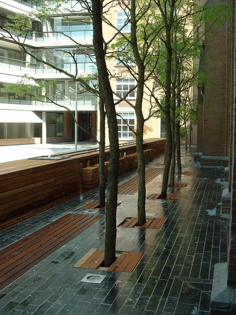 Toen de voormalige school- en kloostergebouwen getransformeerd werden tot appartementencomplex ontstond de kans om voor de bewoners een aangename binnentuin te ontwerpen waar men elkaar kan treffen, samen dineren of gewoon rustig kan zitten mijmeren. Het decor wordt gevormd door de neogotische gevel van de oude kloosterkapel in combinatie met hedendaagse strakke architectuur. Buro Lubbers heeft de inrichting van de buitenruimte daarom bewust sober gehouden. Ierse hardsteen, houten meubilair en een uitgekiend verlichtingsplan geven de plek sereniteit en allure.